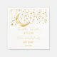 Twinkle scintille petit baby shower étoilé or et parties scintillant modèle serviettes personnalisées baby shower vaisselle. Simple croissant or lune étoiles et arroses sur arrière - plan blanc, police or baby shower modèle serviettes