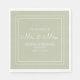Des serviettes en papier de réception vert et blanc à la sauge moderne, chic et élégante, avec les noms de la mariée et du marié et leur date de mariage.