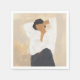 Un tableau minimaliste et abstrait avec une figure détendue aux yeux fermés et aux bras reposant derrière la tête. L'oeuvre utilise des tons doux et chauds et des coups de pinceau simplifiés, évoquant un sentiment de calme et d'introspection. La chemise blanche de la personne contraste doucement avec les tons plus foncés de son pantalon, ce qui renforce l’atmosphère sereine de la pièce.