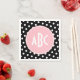 Maintenez ce style de police avec un coque inférieur, un coque supérieur, puis une lettre coque inférieure. Joli pois noir et blanc motif avec cercle monogrammé rose. Customisez le style de police pour créer votre propre design.