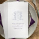 Couronne de coeur de monogramme avec baies et feuille entrelacé crête mariage en papier serviettes invités en couleur gris argent sur blanc avec un texte riche en violet foncé. Personnalisez avec vos propres initiales et nom de couple et date mariage. Dessin à la main original et design par Sarah Trett pour www.mylittleedenweddings.com
