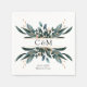 Serviette En Papier Monogramme Elegant Blue Gold (Imitat) Botanique