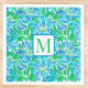 Serviettes monogrammes avec un motif fantaisiste et prépa avec des fleurs bleues et de la verdure. Le design général dégage une ambiance amusante et vive qui illuminerait n'importe quelle fête, les rendant parfaites pour les fêtes, les douches ou les mariages.