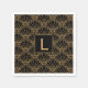 Monogramme noir et or art déco ventilateur fleurs motif papier serviettes en papier. Le design comporte un motif de fleurs en noir et or extensible et votre initiale personnalisée. 1920s Gatsby motif style.