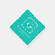 Serviette En Papier Monogramme initial encadré par blanc turquoise