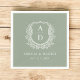 Serviette En Papier Monogramme moderne Mariage Sage Green Crest
