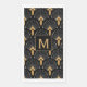 Monogramme noir, or et blanc art déco ventilateur fleurs motif papier serviette. Le design comprend un motif de fleurs de ventilateur style Gatsby des années 1920.