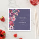Serviettes Moody Floral Mariage. Ajoutez de l'élégance à votre réception de mariage avec ces serviettes en papier magnifiquement conçues, avec un bouquet luxuriant de fleurs d'aquarelle dans les tons de bijoux contre un arrière - plan bleu marine profond. Parfaits pour toutes les saisons, des mariages romantiques d'automne et d'hiver aux fêtes de jardin de printemps et d'été, ces serviettes personnalisables mettent en valeur chaque endroit avec raffinement et charme, rendant même les plus petits détails inoubliables. REMARQUE : le texte est ivoire.