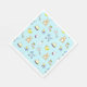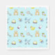 Motif mignon avec des articles bébé sur l'arrière - plan bleu : peluche, canard en caoutchouc, sucette, biberon, poussette... Pour un petit garçon.