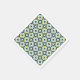 Ce motif moderne du milieu du siècle présente des formes dorées et bleues.