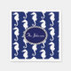 Motif sans fin et sans soudure de silhouettes de hippocampes blancs au-dessus d'un arrière - plan bleu marine. Un classique pour la décoration nautique ou côtière. Customisez à votre goût.