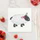 Un mouton à visage noir avec beaucoup de laine blanche et une fleur dans les cheveux. Ce design semble vraiment efficace sur ces serviettes en papier