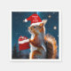 Des serviettes en papier avec une belle image d'écureuil lors d'une nuit d'hiver étoilée, portant un chapeau de Père Noël et tenant un sac de cadeaux avec les mots "Paix sur Terre".