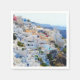 Serviettes de fête en papier avec image de la ville balnéaire de Santorin Grèce.