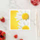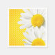 Serviettes en papier avec pois jaunes et fleurs de margarita blanche et jaune.