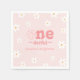 Belle fille 1er année papier serviette d'anniversaire avec un texte de typographie rose gras "onederful" au milieu et entouré de fleurs super rétro.