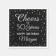 Ajoutez une touche élégante et personnalisée aux décorations de fête d'anniversaire avec ces serviettes en papier noir et blanc personnalisées. Design dispose de la calligraphie script moderne personnalisable "Cheers to 50 Years" et faux parties scintillant argenté points confetti sur un arrière - plan noir. Ce modèle est conçu pour fêter ses 50 ans, mais il est simple de le personnaliser pour une année différente. Joyeux anniversaire !
