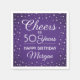 Ajoutez une touche élégante et personnalisée aux décorations de fête d'anniversaire avec ces serviettes en papier de parties scintillant mauve, blanche et faux argent. Design propose une calligraphie de script moderne personnalisable "Cheers to 50 Years" et des points de confettis de parties scintillant simulés sur un arrière - plan violet. Ce modèle est conçu pour fêter ses 50 ans, mais il est simple de le personnaliser pour une année différente. Joyeux anniversaire !