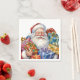 Serviettes en papier avec une jolie image de Noël. Un Père Noël traditionnel dans sa tenue rouge classique. Ses bras pleins de cadeaux. Prêt à apporter des cadeaux à tous.