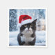 Chat noir et blanc mignon portant un chapeau de Père Noël.