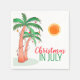 Fêtons Noël en juillet avec un barbecue ou une fête ! Famille Invitation et amis à votre fête de Noël et décorez-la avec ces serviettes en papier de style île avec des palmiers dessinés à la main et décorés de lumières. Dessin original © Michele Davies.
