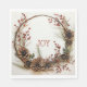 Belles serviettes en papier de Noël avec une jolie couronne en cônes de pin, bâtonnets, brindilles, baies rouges et branches de pin. Ajoutez votre salutation, vos initiales ou votre monogramme.