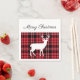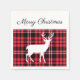 Ensemble de serviettes en papier Joyeux Noël avec un motif en plaid rouge et un imprimé en cerf blanc. assorties accessoires de fête de Noël et stationnaire disponibles au studio de design Dots & Stripes.