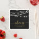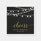 Ajoutez des détails élégants à votre journée spéciale avec cette serviette de soirée personnalisée. Ce design est doté de lumières chic et moderne à cordes et typographie "Cheers" en or et noir thème de couleur. Des invitations de fête d'anniversaire et des fournitures de fête sont disponibles dans ma boutique BaraBomDesign.