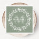 Serviette En Papier Nom du monogramme de couronne de couple vert marié