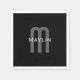 Serviette En Papier Nom Monogramme d'apparence moderne | Noir gris bla