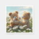 Deux adorables nounours bruns sont assis au milieu d'un champ de marguerites, chacun tenant un dandelion moelleux.