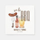 Nous faisons BBQ barbecue couples nuptiale douche favorise monogrammed customisé modèle de serviettes en papier. Design simple avec verre à bière, saucisse et une bouteille de sauce chaude décoration de table de douche BBQ.
