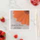 Customisez les jolies serviettes en papier Mariage orange Gerber Daisy et Satin avec le nom personnel de la mariée et du marié et date à utiliser à votre classe douche nuptiale ou réception de mariage. Ces élégantes serviettes jetables à fleurs personnalisées sont ornées d'une photo florale d'une fleur de marguerite orange avec un arrière - plan satiné blanc.
