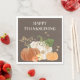 Serviettes Brown en papier "Bon thanksgiving" avec de jolis citrouilles orange et blanc et feuilles d'automne en or gliteux