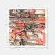 Une collection d'anciens outils à manches rouges anciens sur une table à un marché aux puces.