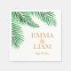 Ce design simple présente de beaux feuilles de palmiers pivotants contre un arrière - plan blanc pur. Vous pouvez modifier les noms, le style de police et le placement en accédant au menu personnaliser. Il fait partie d'une suite tropicale mariage que vous pouvez entièrement personnaliser.