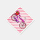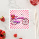Serviettes en papier de fête avec image de vélo rose coloré contre le rose et blanc décapé du fond.
