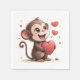 Serviette En Papier Paper Napkins Valentine's Day Monkey Red Hearts