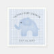 Doux bébé garçon bleu et blanc en vichy avec baby shower d'éléphant pastel faux feutre personnalisées serviettes en papier.
