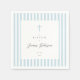 Serviettes en papier Baptême élégantes pour les garçons, rayées bleu et blanc clair et croix simple sur un arrière - plan en ivoire.