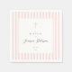 Serviettes en papier Baptême élégantes pour les filles qui présentent des rayures rose et blanc clair et une simple croix sur un arrière - plan en ivoire.