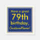 Cette conception de serviette papier à thème d'anniversaire simple comporte un message comme "Avoir un grand 79e anniversaire, CustomName!", où le nom et le numéro d'anniversaire peut être customisé. Des serviettes en papier customisées comme celles-ci pourraient être amusantes à avoir à une fête d'anniversaire.