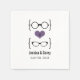 Serviettes en papier Mariage Quirky et chic Geeky Glasses avec un coeur violet flanqué de deux paires de lunettes geeky, une paire de manteaux et une paire de ceintures représentant le marié et la mariée. Ces serviettes, décalées mais sophistiquées, sont parfaites pour votre mariage nerveux ! Facile à customiser, ajoutez simplement les détails de votre grand jour dans les champs de texte fournis. Cliquez sur le bouton "Customiser" pour trouver d'autres options de personnalisation.