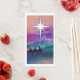 Belle scène aquarelle avec la silhouette des Trois Rois en route vers le nouveau-né Jésus. Carte religieuse de Noël proclamant la naissance du Christ.