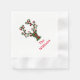 Serviette en papier de vacances en blanc avec imprimé de cerf vert et rouge. Taille standard du cocktail indiquée. Customisez cet objet et changez le nom en votre nom.
