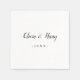 Serviettes en papier mariage blanc chic avec des noms personnalisés et date dans élégant script noir. Ajoutez facilement vos détails personnalisés.