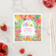 Célébrez cet anniversaire spécial avec ces serviettes en papier de luau Aloha. Caractéristiques fleurs tropicales lumineuses, flamants roses et vos informations. Fournitures de fête assorties disponibles dans ma boutique. Conception ©Rosalind Moore, Cherry Lane Designs