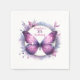 De belles serviettes en papier d'anniversaire avec un papillon radiant, entourées d'une aura céleste et de délicats accents floraux. Le papillon, peint dans les teintes de violet et de rose, symbolise la transformation et les nouveaux débuts, ce qui en fait l'emblème parfait pour commémorer une autre belle année de vie.