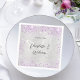 Un arrière - plan faux argenté décoré de faux parties scintillant violettes, de mousseux et d'un papillon comme un filigrane. Personnalisez et vos noms et la date du mariage.