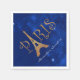 Paris thème Sweet 16 anniversaire serviettes en papier de fête, avec des graphiques d'un arrière - plan bleu et parties scintillant d'or à l'aspect graphique texte lecture Paris, avec la lettre a fait comme la Tour Eiffel. Personnalisez le texte du script blanc pour la journée spéciale de votre fille. Produits correspondants disponibles.